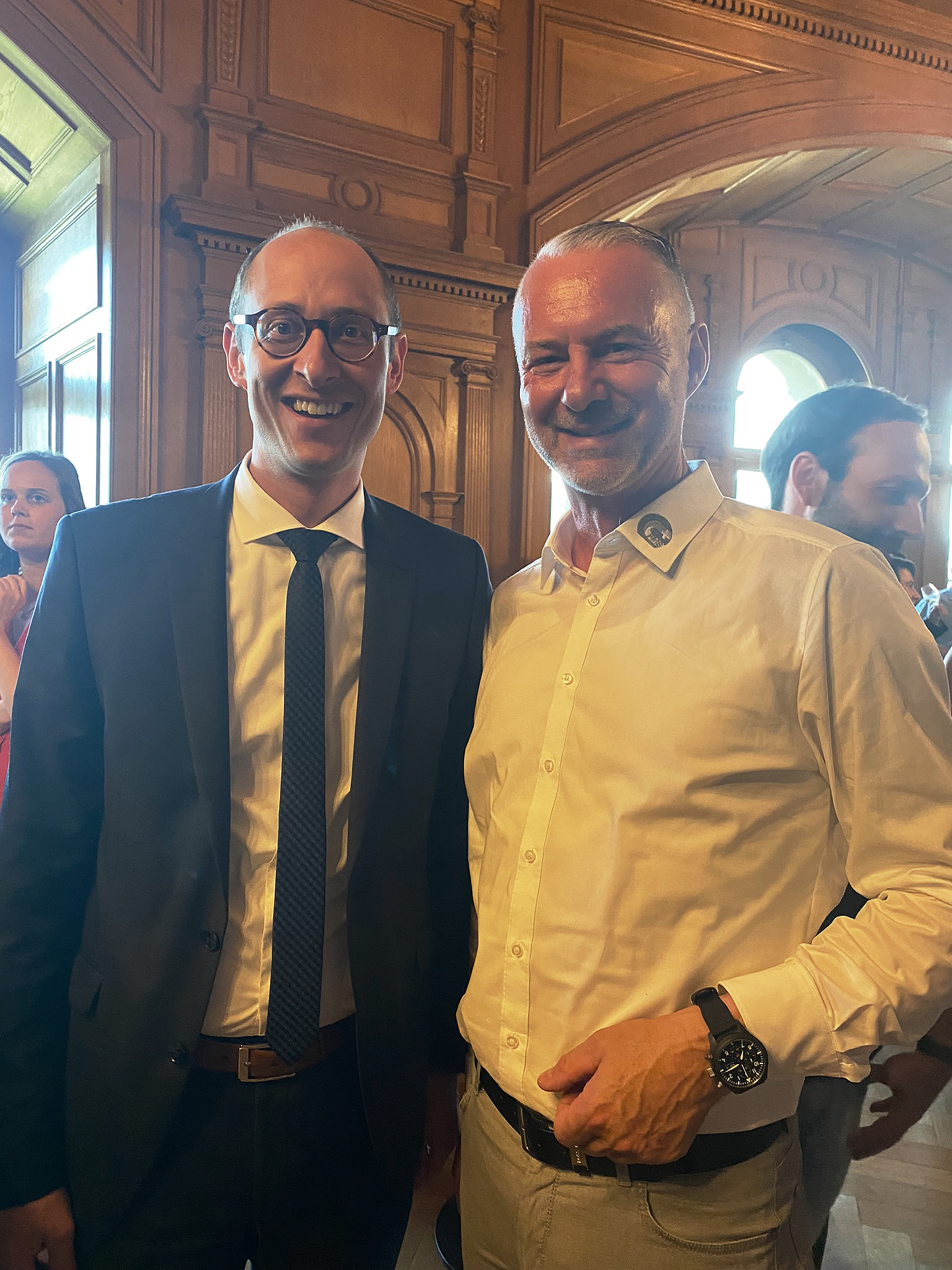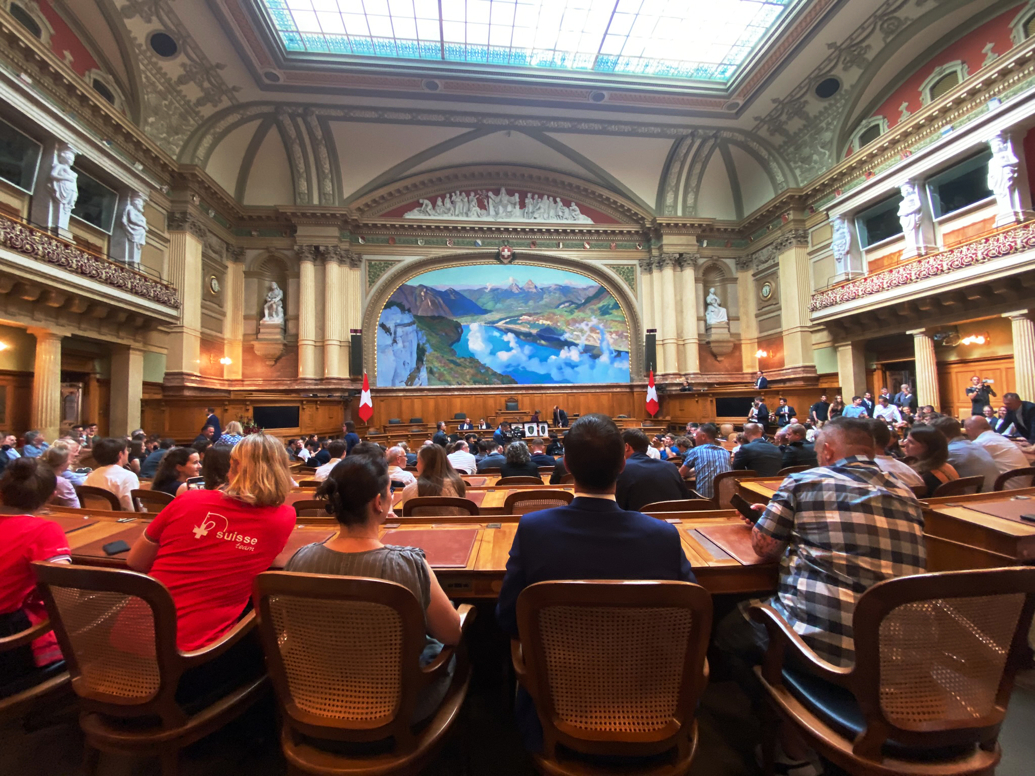 Am gestrigen Montag empfingen Sportministerin Viola Amherd und Nationalratspräsident Martin Candinas die Medaillengewinnerinnen und Gewinner an Welt- und Europameisterschaften der Jahre 2022/2023, sowie Vertreter von Verbänden im Parlamentsgebäude in Bern. Rolf Enz (Sport Direktor & Mitglied des Zentralvorstandes), begleitete unsere Spitzenathleten angeführt vom Doppelweltmeister Dominique Aegerter (WorldSSP), Rolf Haller (EM Bergrennen 250GP), Uwe Rademacher (EM Bergrennen Superbike), Mauro Poncini (EM Bergrennen Supersport) und Philippe Bongard (EM Bergrennen Supermoto). Jeremy Seewer (MXGP) hatte sich für den Anlass entschuldigt.