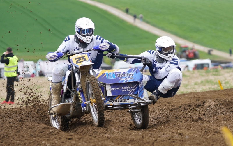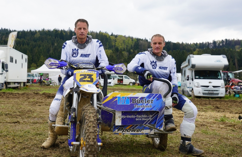 Das Linksgespann mit der legendären Startnummer 23 kennt man auf den Rennplätzen der Schweiz und praktisch jedem Seitenwagen Motocross Fan der Schweiz sind „die im Weiss-Blauen Dress“ ein Begriff. Nicht der grosse Erfolg hält sie zusammen, nein, einzig und allein die Faszination Seitenwagen Motocross. Sicher nicht immer sind sich Fahrer und Beifahrer einig, aber als Team auf einem Motocross Seitenwagen darfs nicht grosse Meinungsverschiedenheiten geben sonst funktioniert diese Teamsportart mit Bestimmtheit nicht.