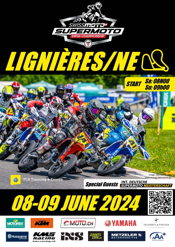 Nous y sommes à nouveau! Le Supermoto de Lignières est à nos portes et nous vous invitons à faire partie de ce week-end spectaculaire. Du 8 au 9 juin 2024, Lignières sera le point chaud des fans de sport motocycliste et des amateurs d'action, car il accueillera le Supermoto, qui compte non seulement pour le championnat suisse, mais qui accueille également la top classe du championnat allemand de Supermoto en tant que Special Guests.